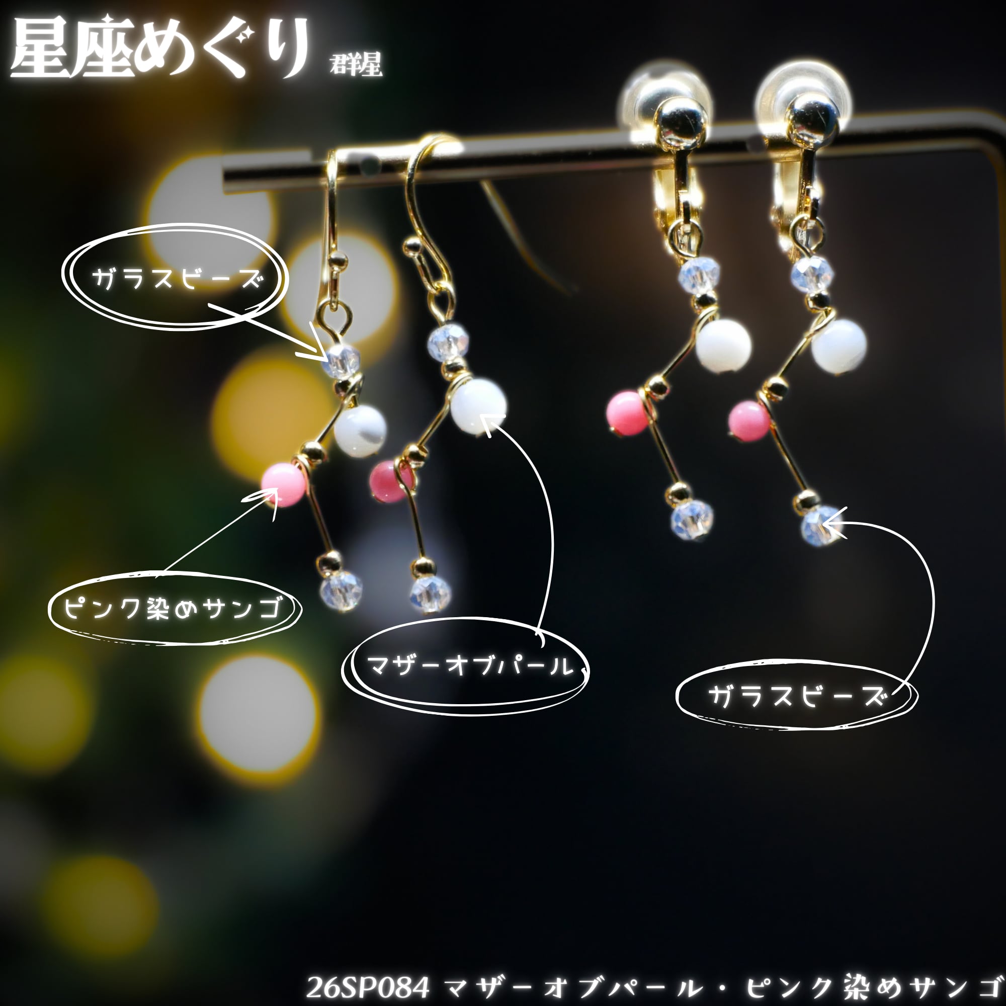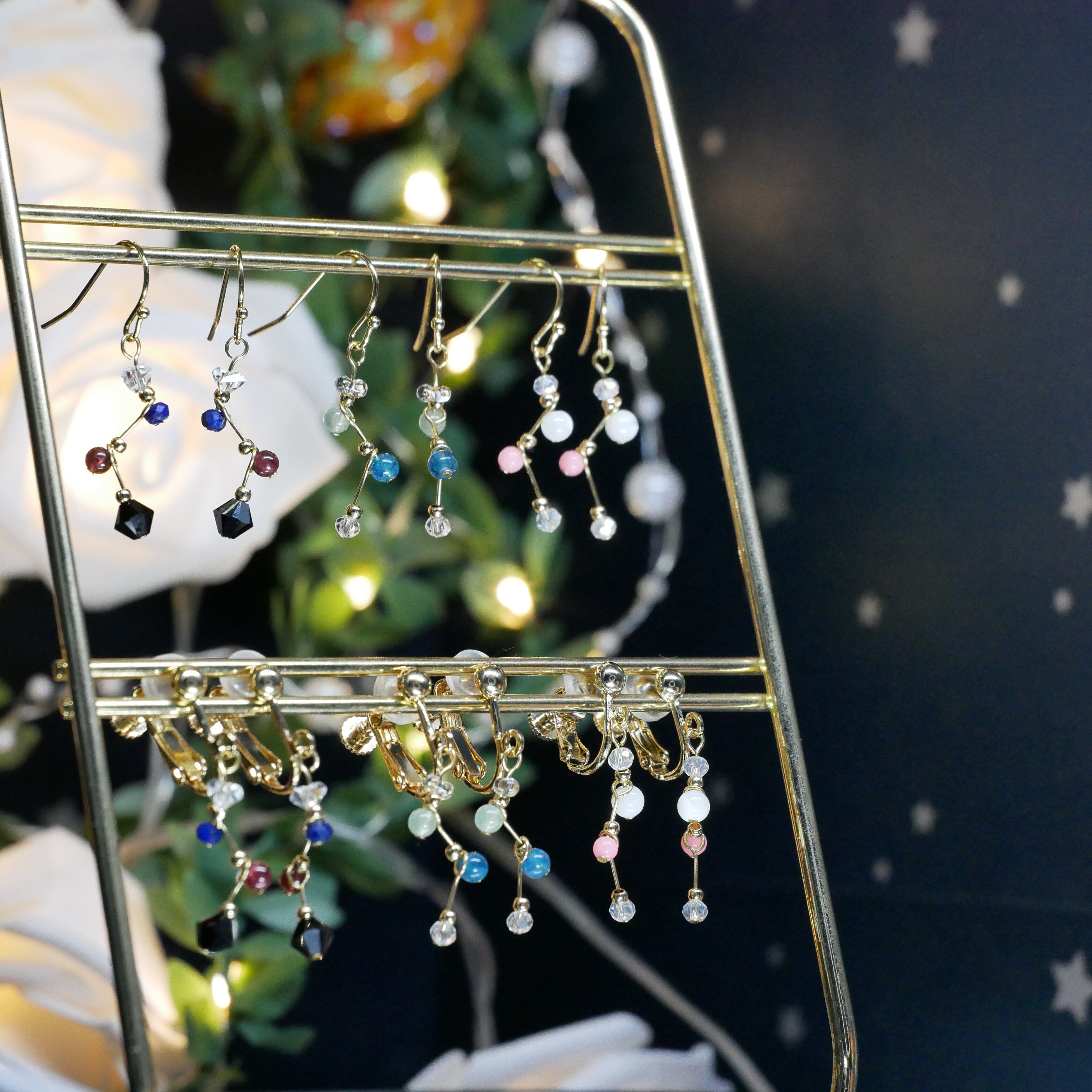 星のように輝く天然石やガラスビーズで光をあつめてほしいです。