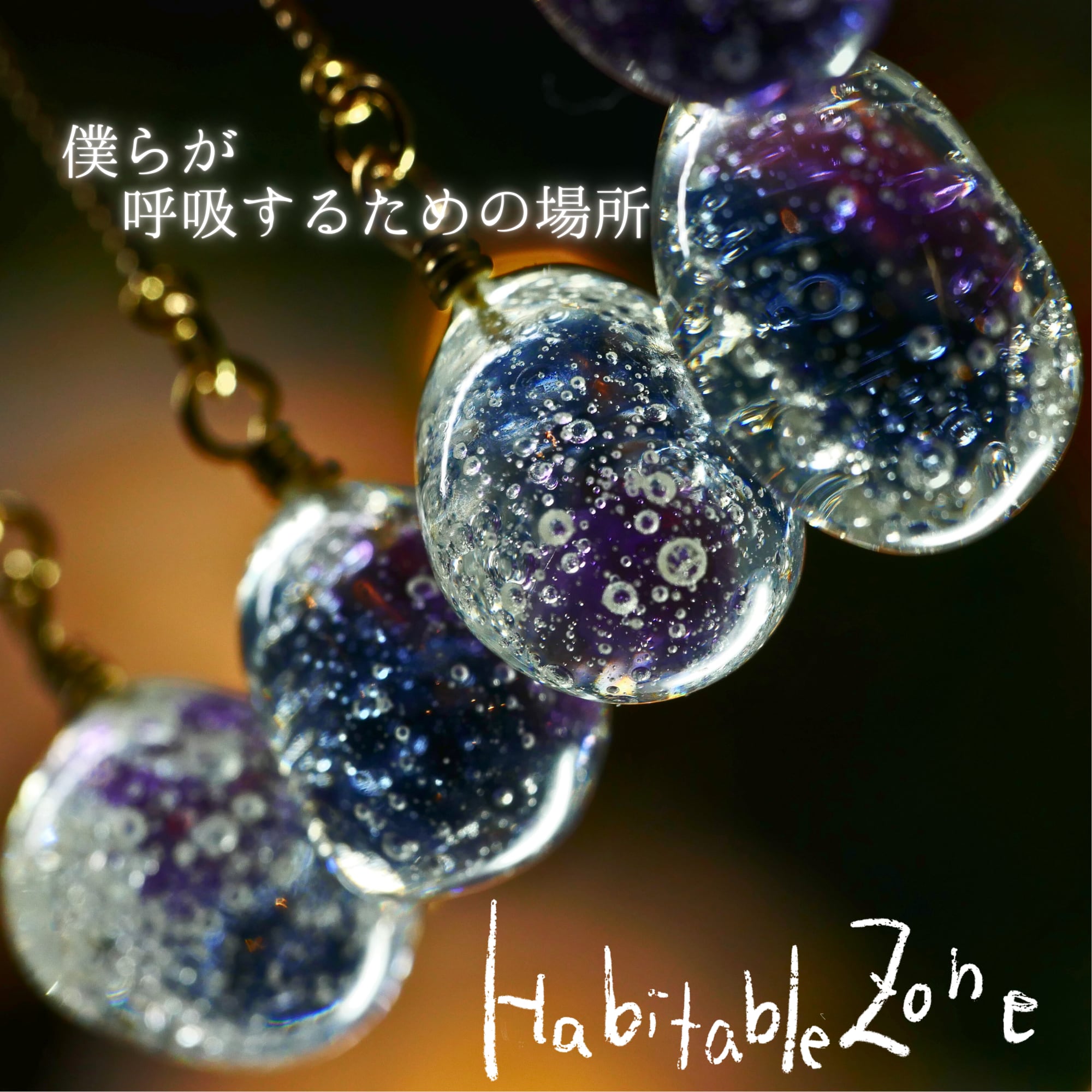 水を纏う惑星と生命の呼吸をレジンで表現しました。